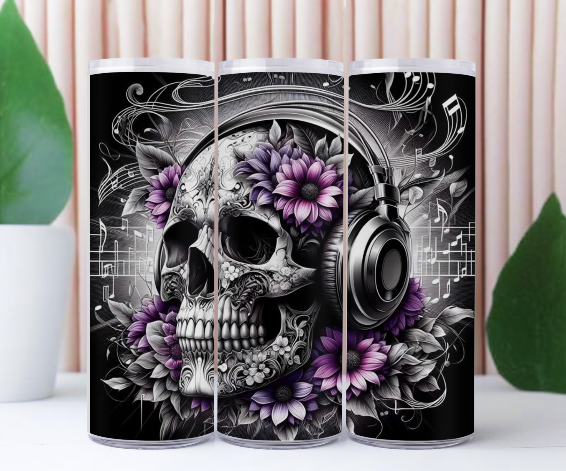 Totenkopf mit Kopfhörer